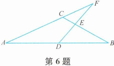6. 如图,$DE分别与\triangle ABC的边AB$,$BC相交于点D$,$E$,与$AC的延长线相交于点F$,$∠A= 25^{\circ}$,$∠B= 30^{\circ}$,$∠BED= 100^{\circ}$. 求$∠F$的度数.