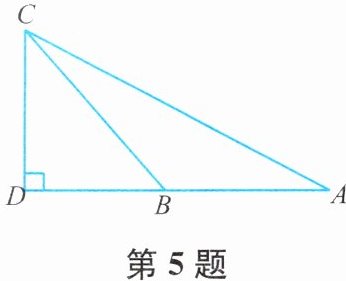 5. 如图,从$A处测得建筑物的顶部C的仰角∠CAD= 30^{\circ}$,沿直线$AD走到点B处时测得建筑物的顶部C的仰角∠CBD= 55^{\circ}$. 从建筑物的顶部$C观测A$,$B两处时视角∠ACB$的度数是多少?
