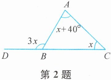 由图知∠ABD=3x,所以3x=40°+2x,解得x=40°。