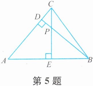 5. 如图,在$\triangle ABC$中,$BD$,$CE分别是AC$,$AB$边上的高,并且$BD$,$CE相交于点P$.若$\angle A = 50^{\circ}$,则$\angle BPC= (