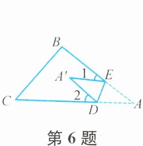6. 如图,把$\triangle ABC纸片沿DE$折叠.当点$A落在四边形BCDE$内部时,则$\angle A与\angle 1$,$\angle 2$之间的数量关系是(