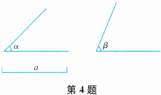 4. 已知三角形的两个角分别是∠α和∠β,这两角所夹的边长为a,如图所示,求作△ABC,使∠A= ∠α,∠B= ∠β,AB= a.(保留作图痕迹,不写作法)