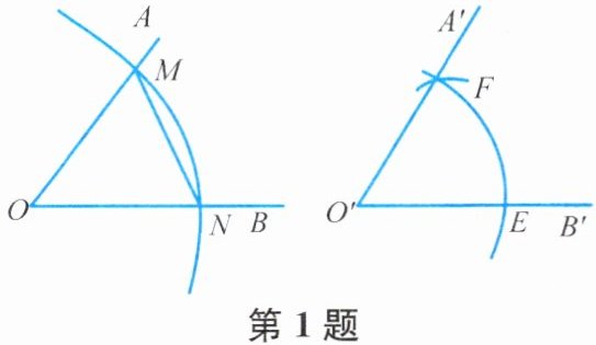 1. 利用直尺和圆规作一个角等于已知角,如图所示,能得出∠A'O'B'= ∠AOB的依据是(