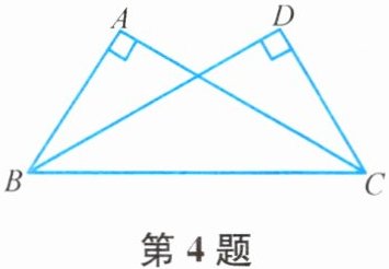 4. 如图,$\angle A= \angle D= 90^{\circ}$,$AC= DB$,则判定$\triangle ABC≌\triangle DCB$的依据是(