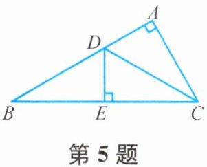 5. 如图,在$Rt\triangle ABC$中,$\angle BAC= 90^{\circ}$,$DE\perp BC$,$AC= 6$,$EC= 6$,$\angle ACB= 60^{\circ}$,则$\angle ACD$的度数为(