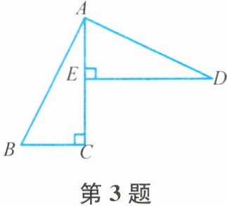 3. 如图,AC⊥BC于点C,DE⊥AC于点E,AD⊥AB于点A,若BC= AE= 4,DE= 7,则EC=