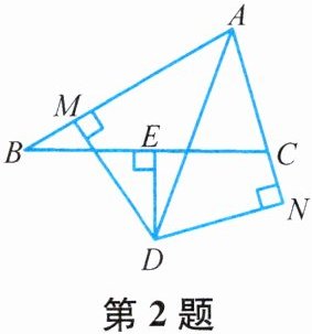 2. 如图,在$\triangle ABC$中,$E是BC$边上的中点,$DE\bot BC于点E$,$DM\bot AB于点M$,$DN\bot AC于点N$,$BM = CN$. 求证:点$D在\angle BAC$的平分线上.