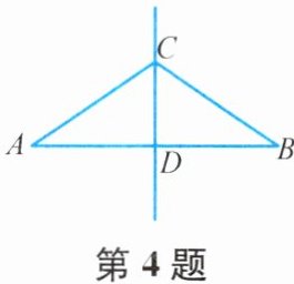 4. 如图,$CD是AB$的垂直平分线,垂足为$D$.