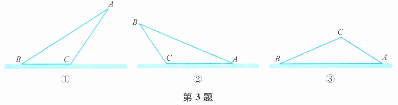 .请在下面的三个图形中画出$\triangle ABC$的高.