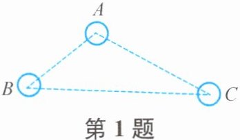 1. 如图,有$ A $,$ B $,$ C $三个居民小区,现决定在三个小区之间修建一个购物超市,使超市到三个小区的距离相等,则超市应建在(