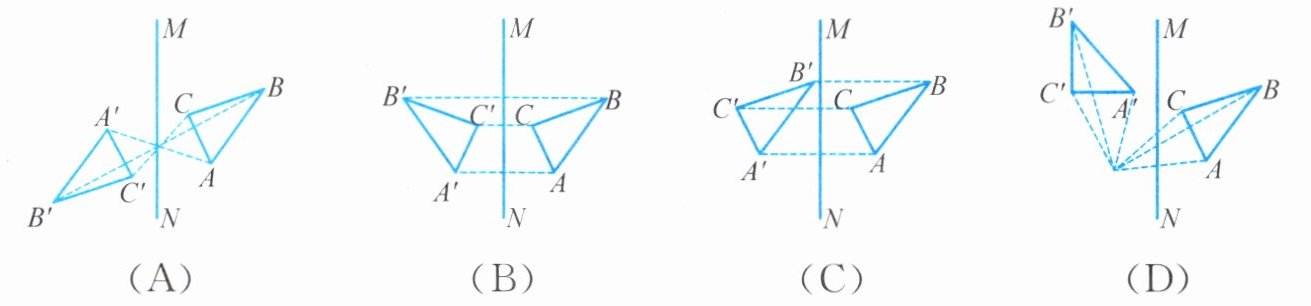 1. 以下是四位同学作出的$\triangle ABC关于直线MN$的轴对称图形,其中正确的是(