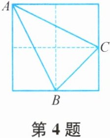 4. 如图,在由$4$个小正方形组成的田字格中,$\triangle ABC$的顶点都是小正方形的顶点,在田字格上画与$\triangle ABC$成轴对称的三角形,且顶点都是小正方形的顶点,则这样的三角形(不包含$\triangle ABC$本身)共有(
