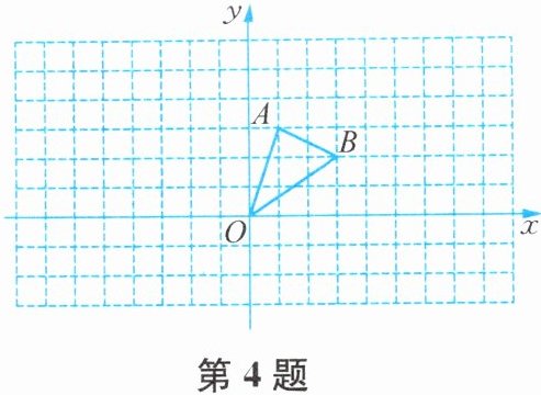 4. 如图,在边长为 $ 1 $ 的小正方形网格中, $ \triangle AOB $ 的顶点均在格点上。