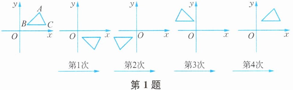 1. 如图,在平面直角坐标系中,对 $ \triangle ABC $ 进行循环往复的轴对称变换.若原来点 $ A $ 的坐标是 $ (a,b) $,经过第 $ 1 $ 次变换后所得的点 $ A_1 $ 的坐标是 $ (a,-b) $,则经过第 $ 2020 $ 次变换后所得的点 $ A_{2020} $ 的坐标是