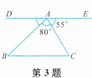 3. 如图,过点$A的直线DE// BC$,则$∠DAB= $