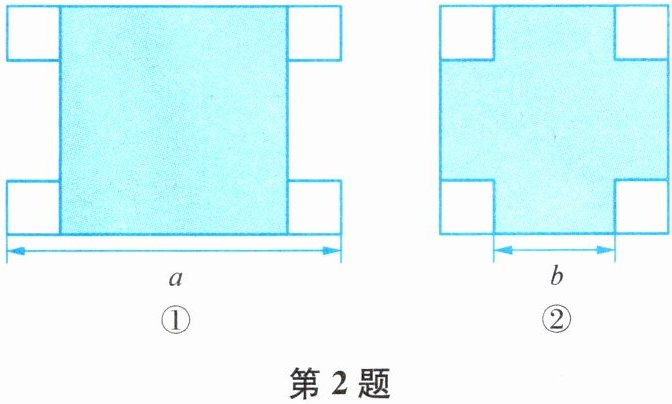 (2)若把图②的4个小正方形剪掉,将剩余部分折成一个无盖长方体,求该长方体的体积.(用含$ a $,$ b $的代数式表示)