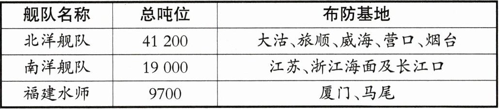材料一 随着洋务运动的开展,近代有识之士开始形成近代海权意识,清政府开始进行近代海防建设,筹建新式海军。下表为三支海军舰队的规模和布防情况: