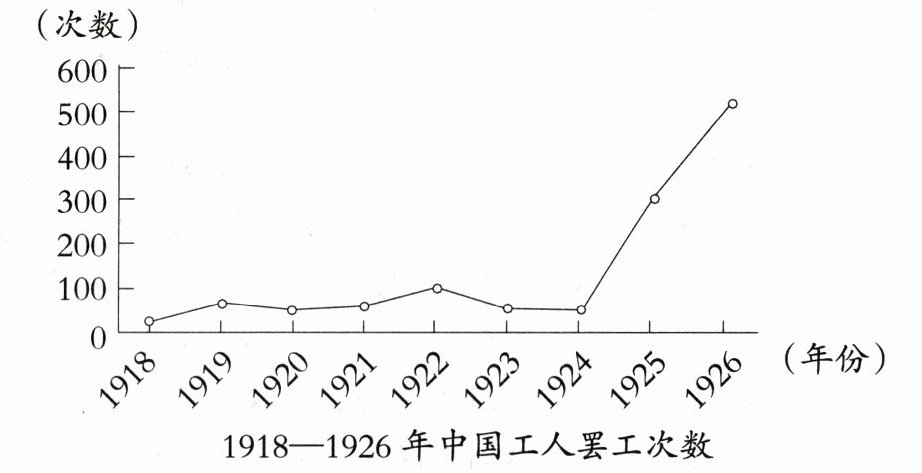)(2025·湖北模拟)读下面的1918—1926年中国工人罢工次数折线图,对此解读正确的是A.中国共产党领导推动了工人运动