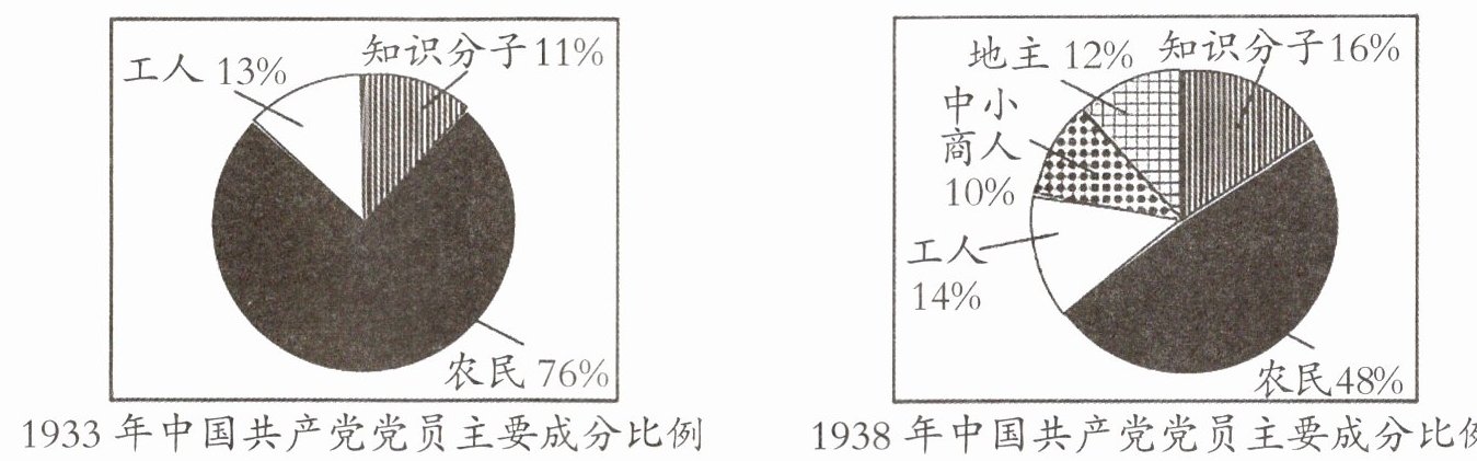 3. (2025·西安工大附中三模)下图所示为1933年和1938年中国共产党党员主要成分比例情况。出现图片所示变化的主要原因是 (