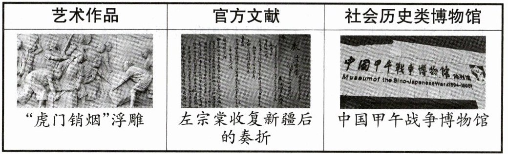 )某学习小组在“中华英雄谱”跨学科主题学习活动中搜集、整理了如下资料。这些资料共同见证的时代主题是| 艺术作品 | 官方文献 | 社会历史类博物馆 |