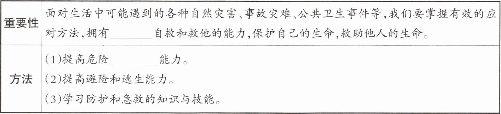 自救和救他的能力,保护自己的生命,救助他人的生命。||方法|(1)提高危险
