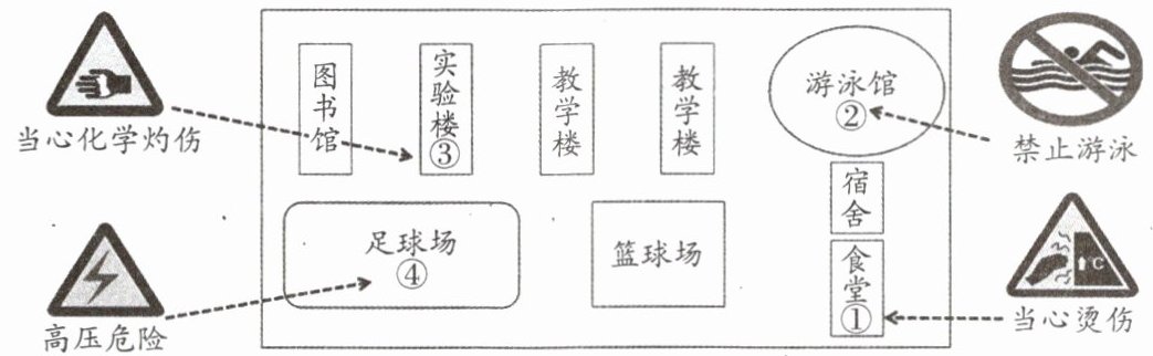 2. 某校正开展“安全标识知多少”主题实践活动,学生小娜在学校四个地点摆放了安全标识(如下所示),其中摆放位置恰当的是 (