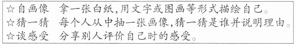 |☆自画像|拿一张白纸,用文字或图画等形式描绘自己。|