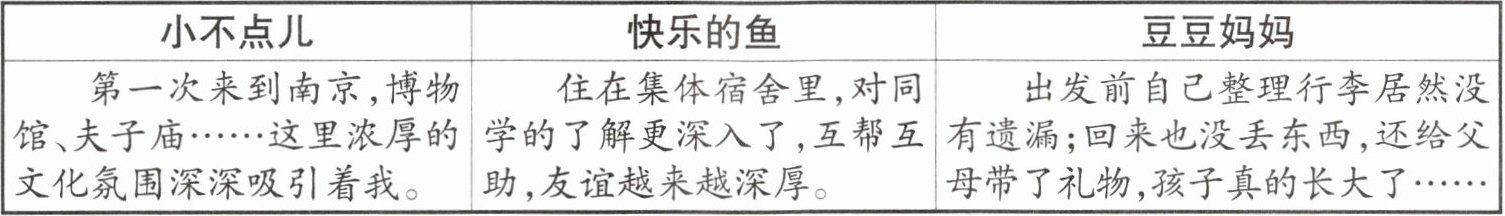 |第一次来到南京,博物馆、夫子庙……这里浓厚的文化氛围深深吸引着我。|住在集体宿舍里,对同学的了解更深入了,互帮互助,友谊越来越深厚。|出发前自己整理行李居然没有遗漏;回来也没丢东西,还给父母带了礼物,孩子真的长大了……|