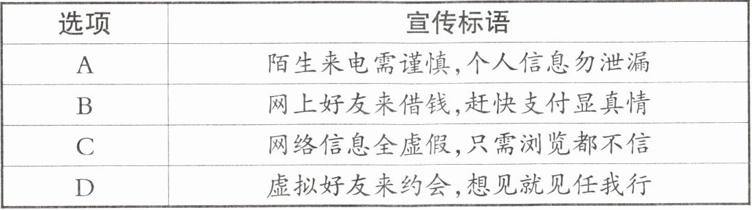 8. 学校开展网络安全教育,邀请你积极参与。同学们创作了许多宣传标语,你认为正确的是 (