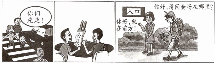 (1)漫画中的行为(车辆礼让行人、使用公筷、礼貌交往)是文明有礼的具体表现。文明有礼是一个人立身处世的前提,有助于建立良好人际关系;促进社会和谐,营造友善、文明的社会氛围;体现国家形象,是中华民族的优良传统。