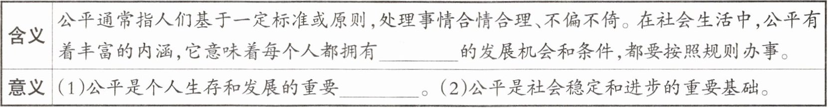 的发展机会和条件,都要按照规则办事。||意义|(1)公平是个人生存和发展的重要
