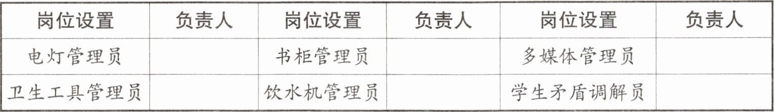 5. 为了发挥集体的智慧与力量,班主任设计了如下班级管理责任分配表: