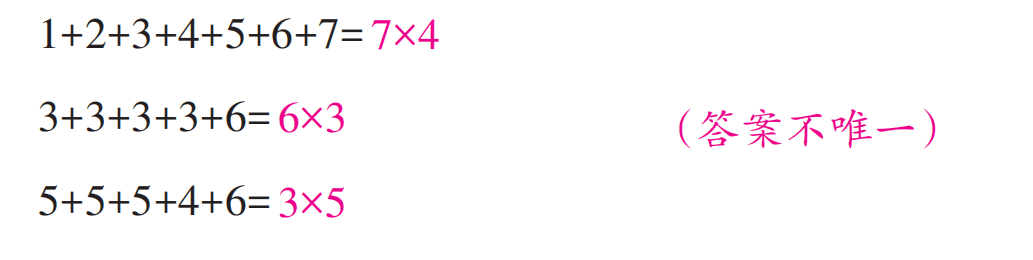 7. 把下面的加法算式改写为乘法算式。