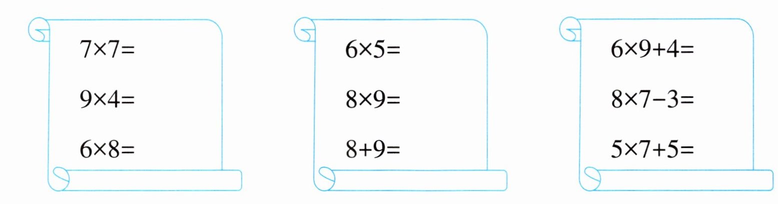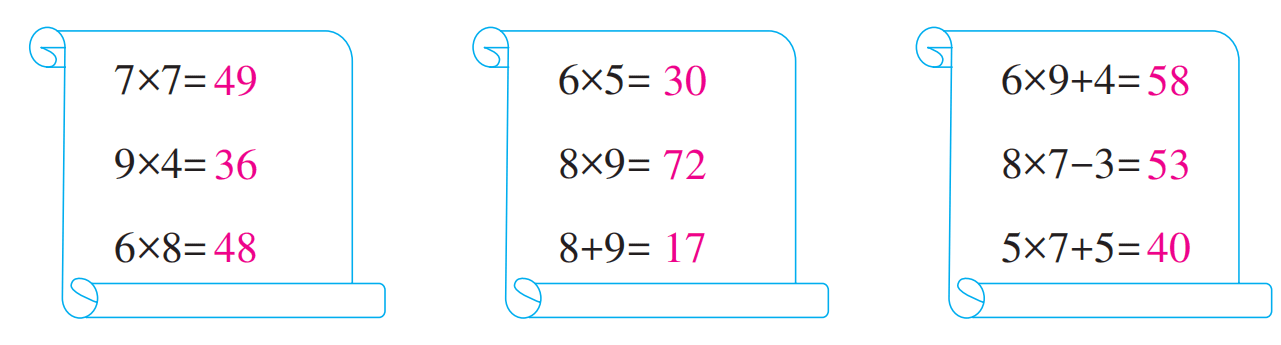 $5×9◯ 9×5$ $7+8◯ 8×7$ $4×9◯ 6×6$