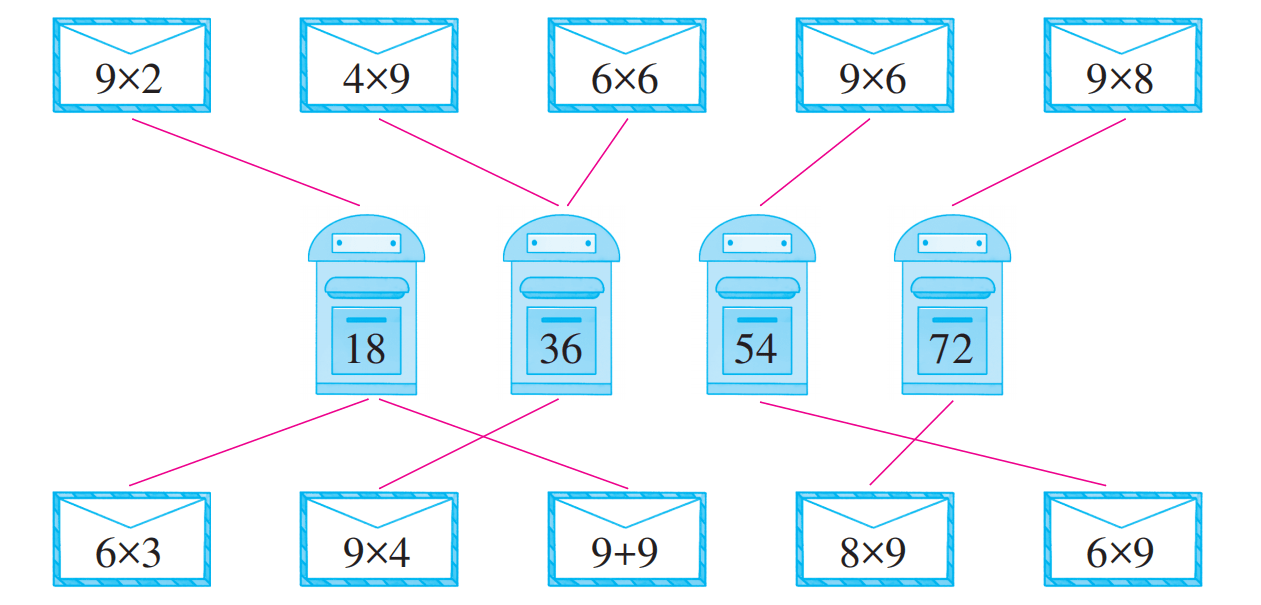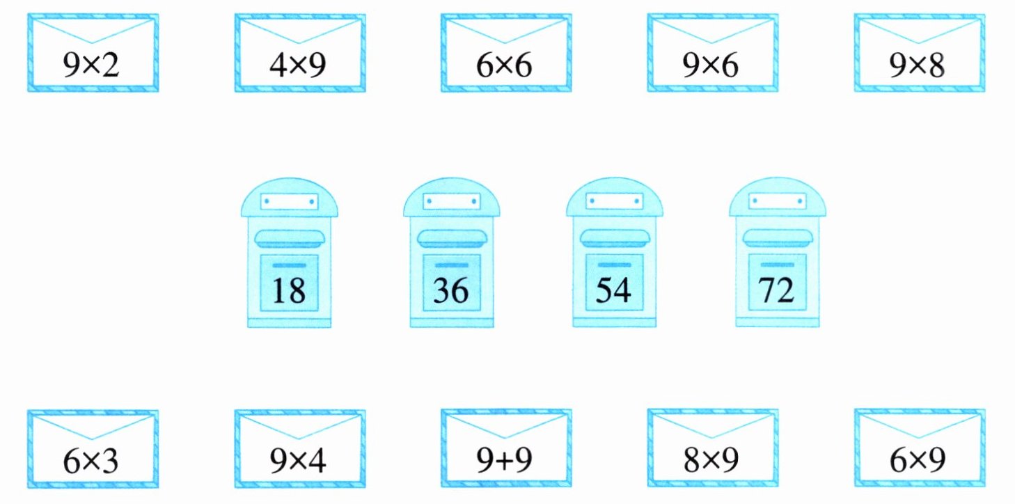 (1) 一架飞机9元,买6架,就是6个9元,用乘法计算:$6×9 = 54$(元)。
