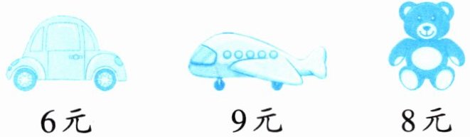 (2) 一辆汽车6元,一架飞机9元,一共要:$6 + 9 = 15$(元)。