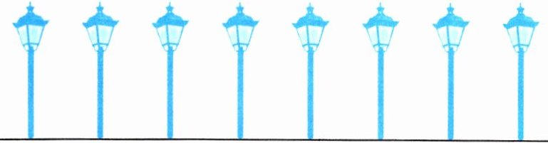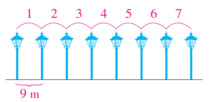 8. 每相邻两根路灯之间的距离是9米,第1根路灯到第8根路灯之间的距离是多少米?
