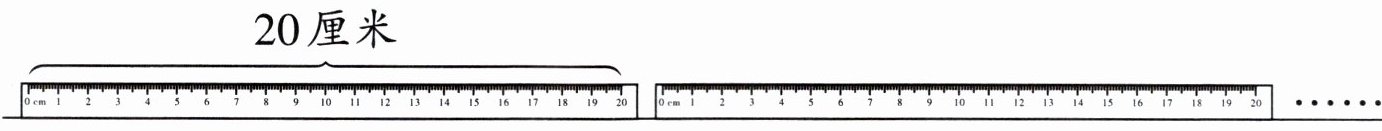 6. 一个方块的长是1厘米,()个方块的长是20厘米。
