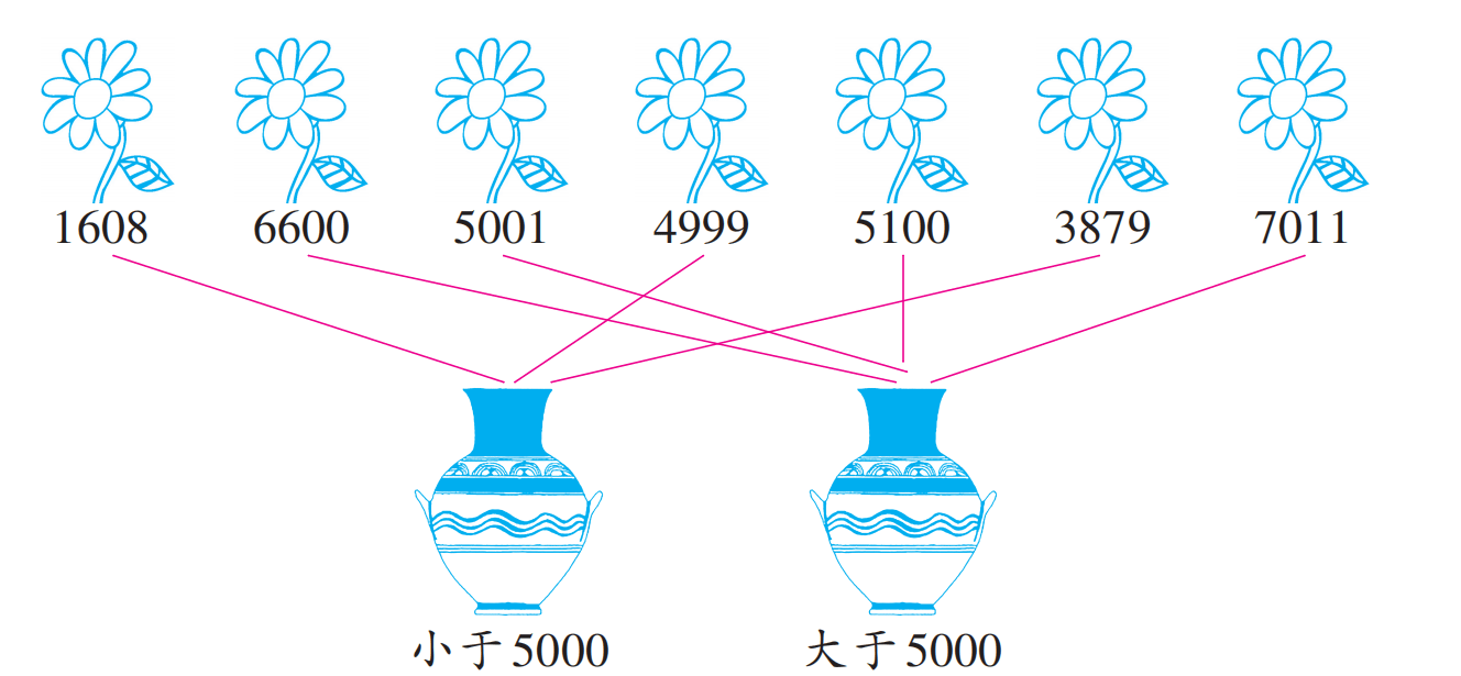 1. 请帮小星把花插入花瓶。(连线)