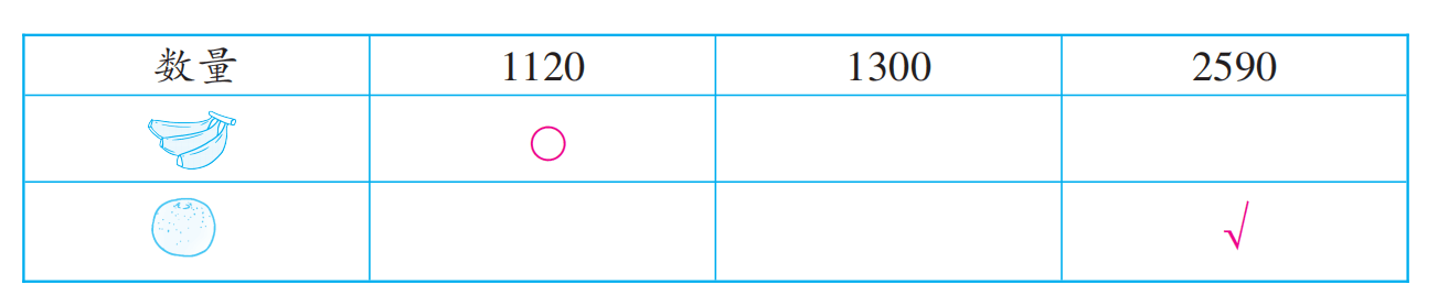 多得多。请在下表中画“○”标出的数量,画“√”标出的数量。