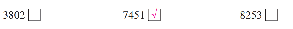 6. 有一个四位数,百位上的数字是个位上数字的4倍,十位上的数字是百位、个位上的数字的和,千位上的数比十位上的数大2。在这个数字后面画“√”。