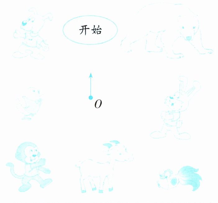 )度,能拿到小兔。(2)从“开始”起,指针绕点O沿(