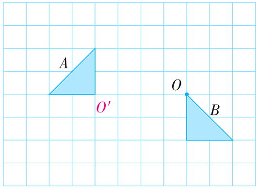 ①图形A先绕点O'顺时针旋转90°。②然后向下平移2格。③最后向右平移4格。(以上3步可交换顺序。)