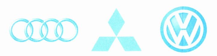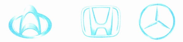 1.下面的汽车标志哪些是轴对称图形?在轴对称图形下面的( )里画“√”。