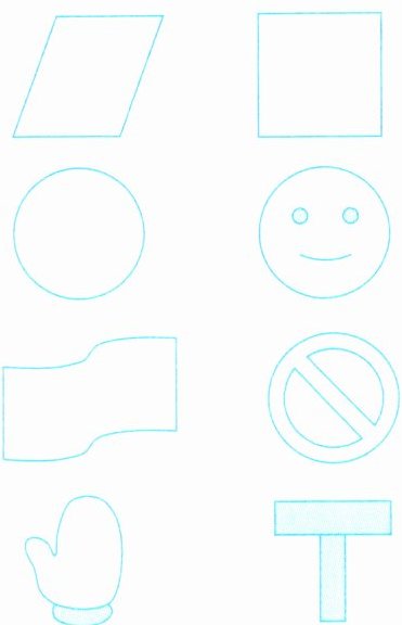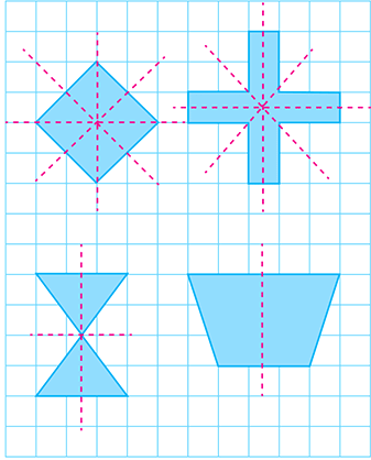 4. 在方格纸上画出下列各图形所有的对称轴。