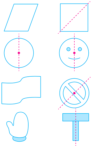 2. 下面哪些图形是轴对称图形?在轴对称图形下面的( )里画“√”,并画出它的一条对称轴。