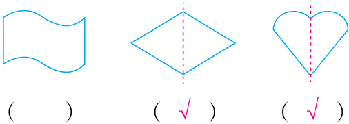 2.下面哪些图形是轴对称图形?在轴对称图形下面的( )里画“√”,并画出它的一条对称轴。