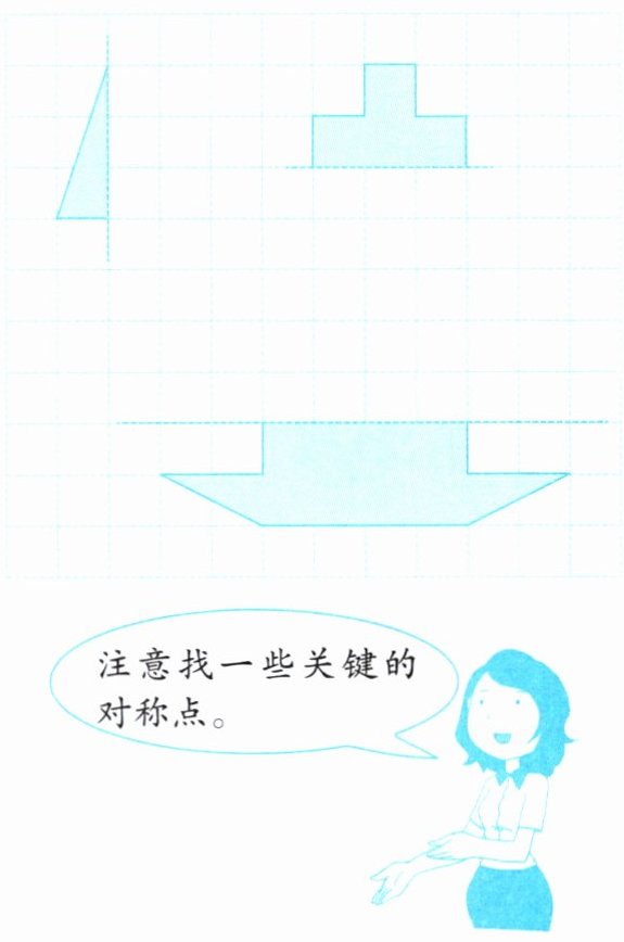 2.画出下面图形的另一半,使它们成为轴对称图形。注意找一些关键的对称点。