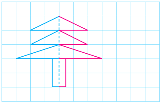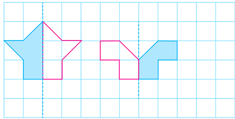 4. 将下面的图形向右平移4格,再画出它的另一半,使它成为轴对称图形。