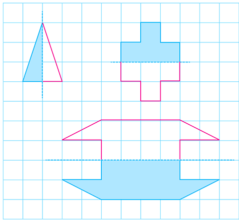 1. 在下面的方格纸上画出下面图形的另一半,使它成为轴对称图形。